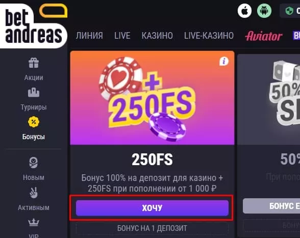 Получите Betandreas бонус при регистрации: ⚡ до 60 фриспинов и выгодные условия для игры в слоты. Вейджер х60, подробности на сайте казино.